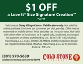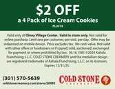 Cold Stone Creamery serves up the finest, freshest ice cream, cakes, smoothies and shakes using only the highest quality ingredients, and of course, their signature process of preparing your custom ice cream creation on a frozen granite stone.